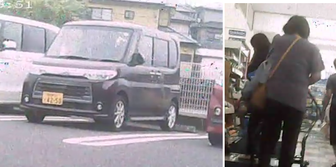 左側の画像の車の運転手が、右側の画像のおばさんです。