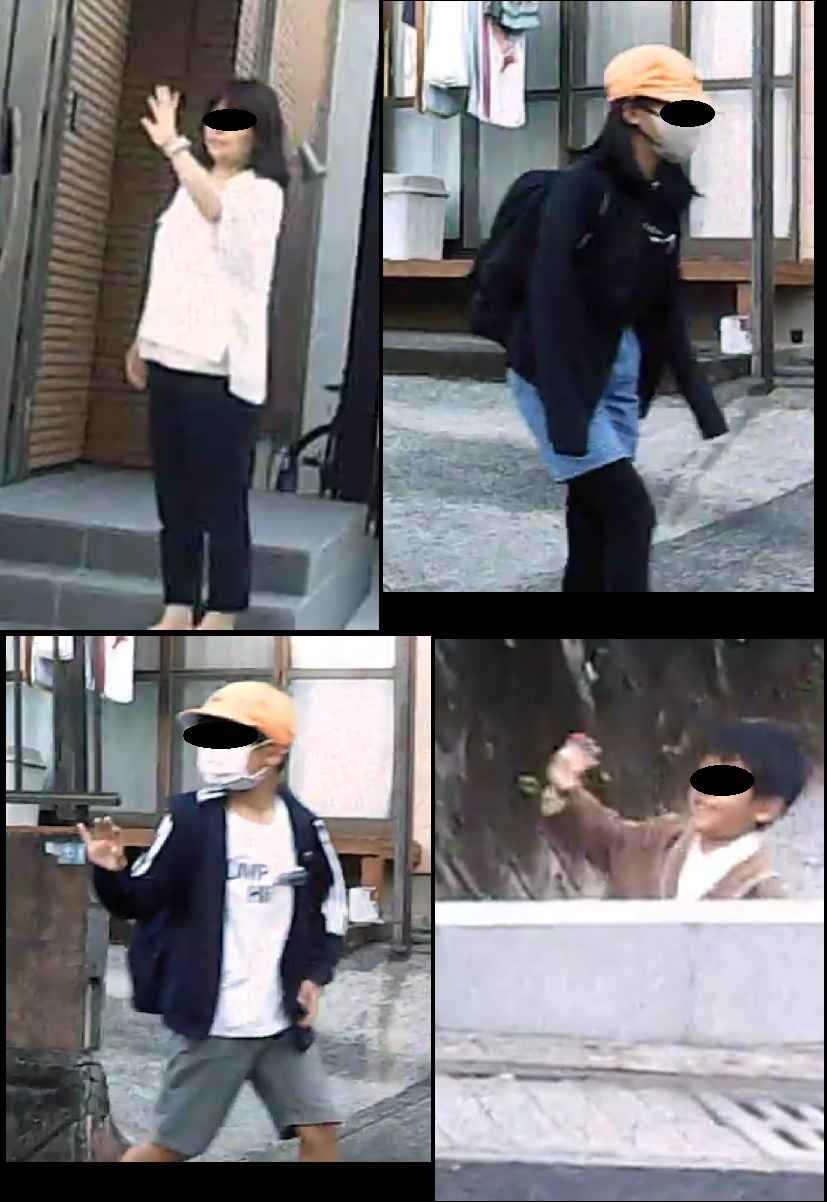 写真の左上は、小学生をお見送りする母親です。