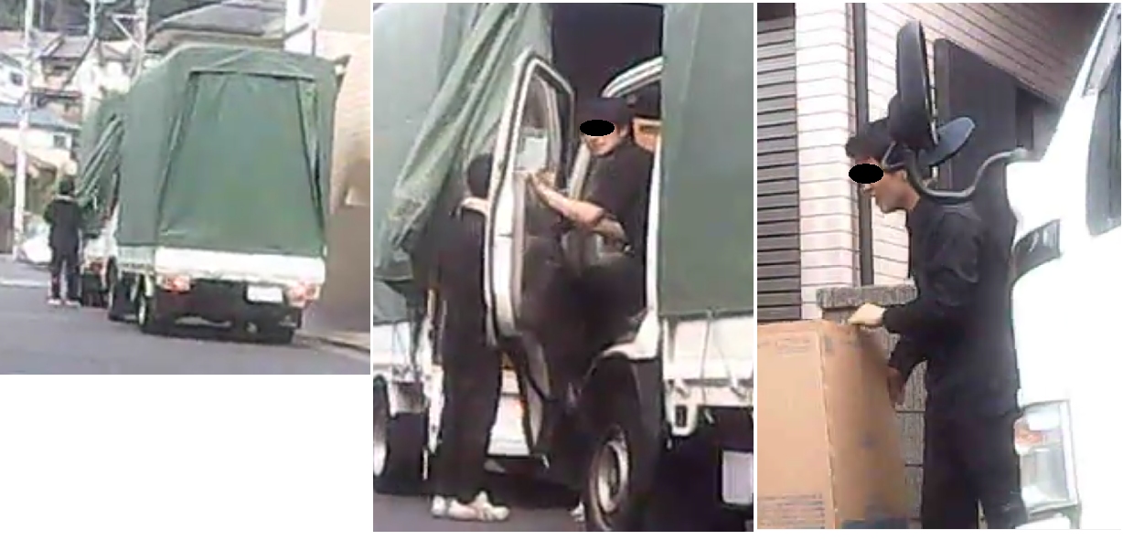 ストーカー行為を否定する為に、トラック配送業者を装います。