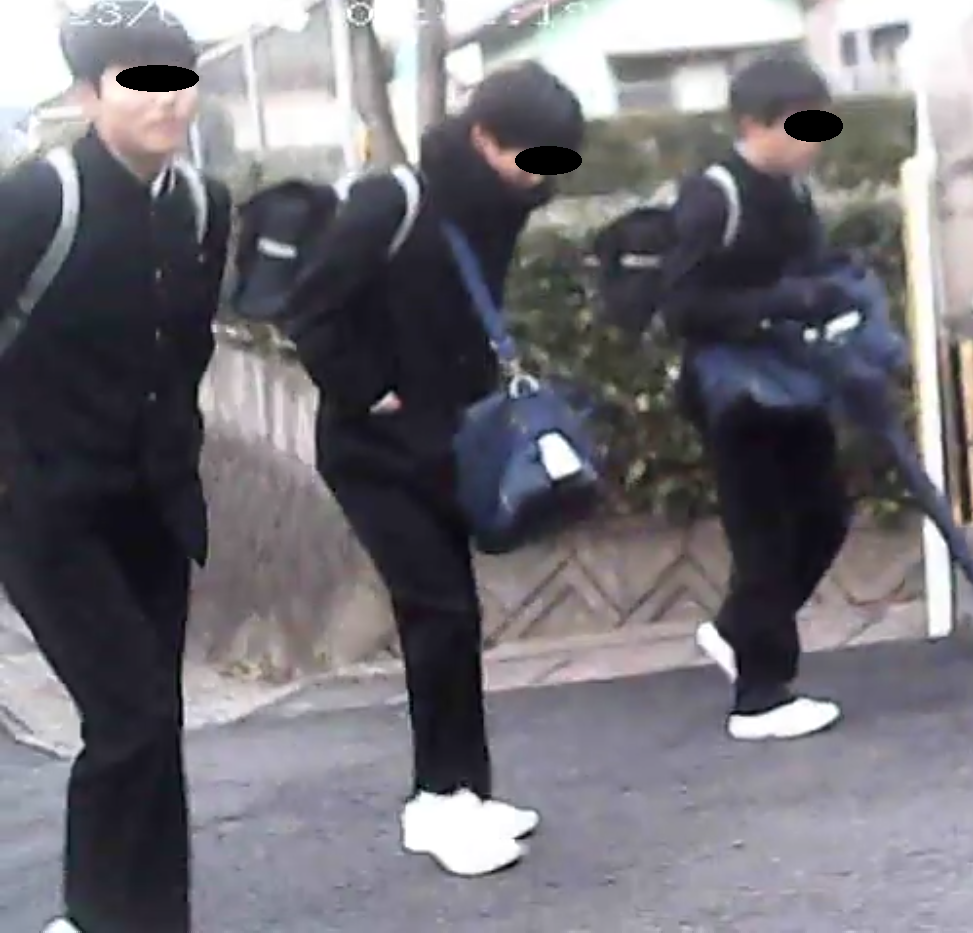 2023/01/26 AM7:41 に遭遇した高校生ストーカー3人組です。