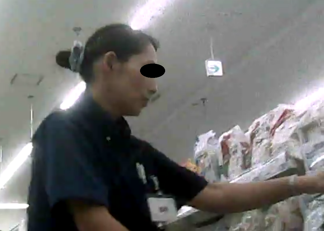 このオバサンは、スーパーの店員です。