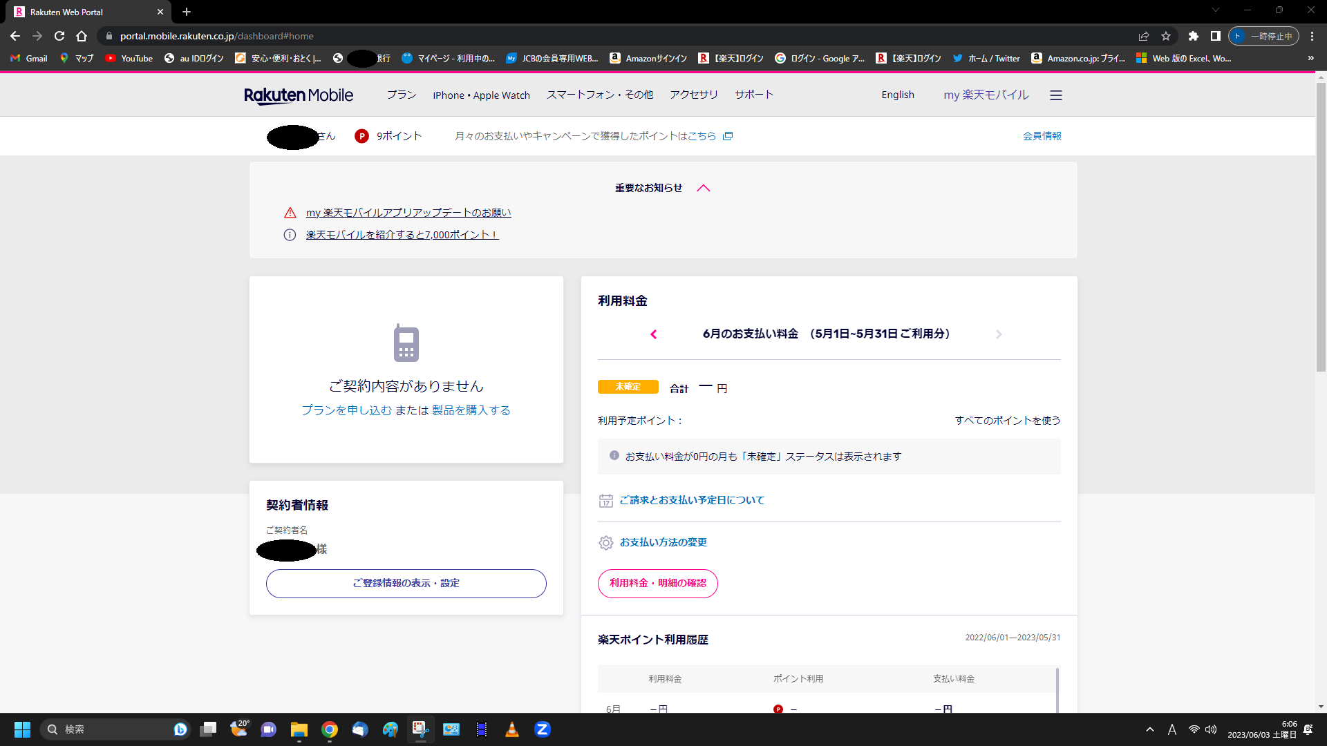 2023/06/03 楽天モバイルのデータ使用量が表示されません。