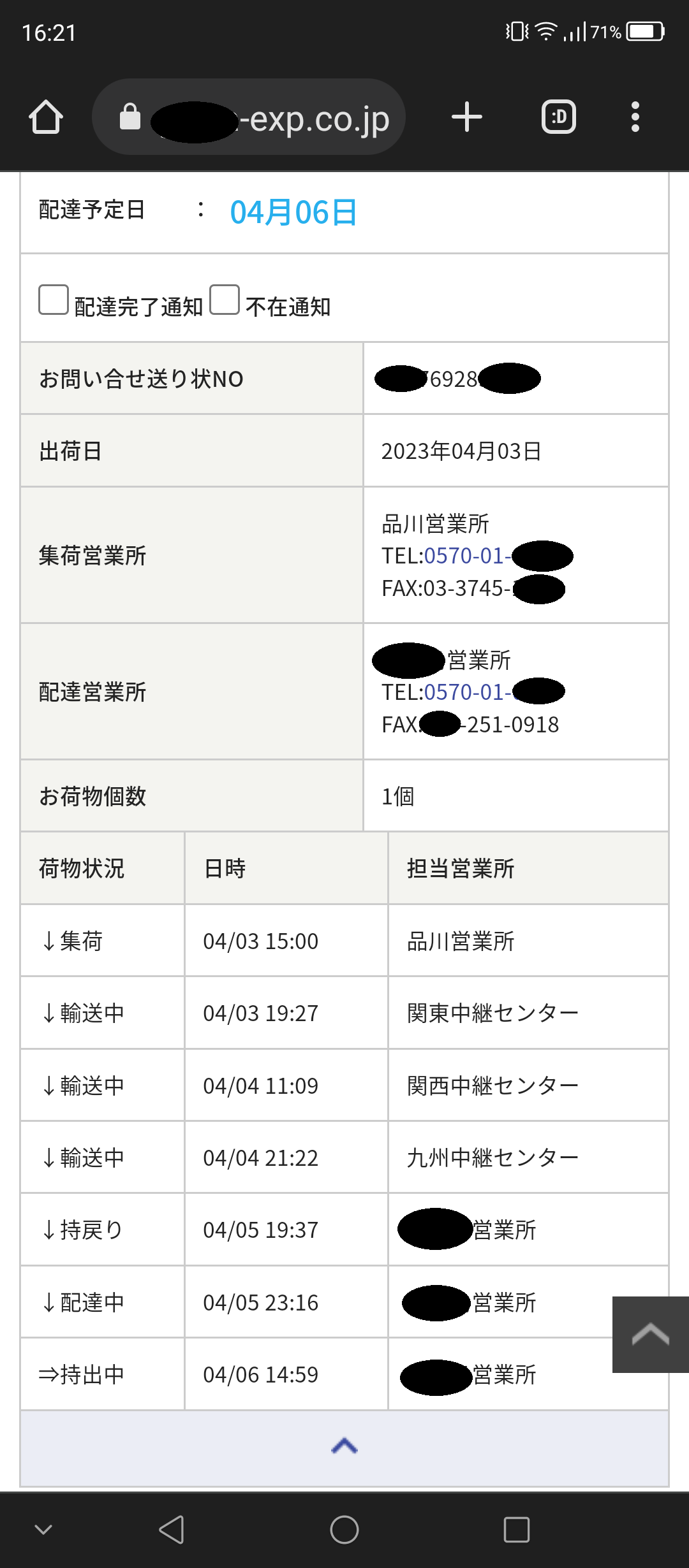 2023/04/06 PM4:30 に「さ○○急便」に電話をしたら