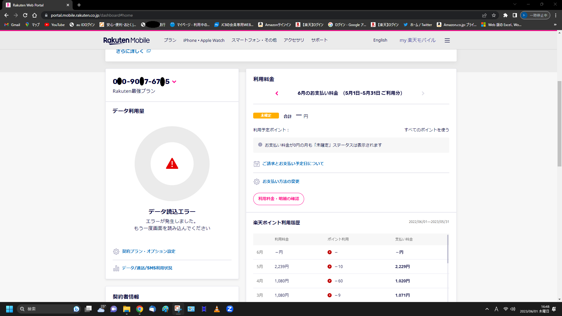 ネット妨害2023/06/01 PM4:48 にデータ使用量を確認しようとしたら